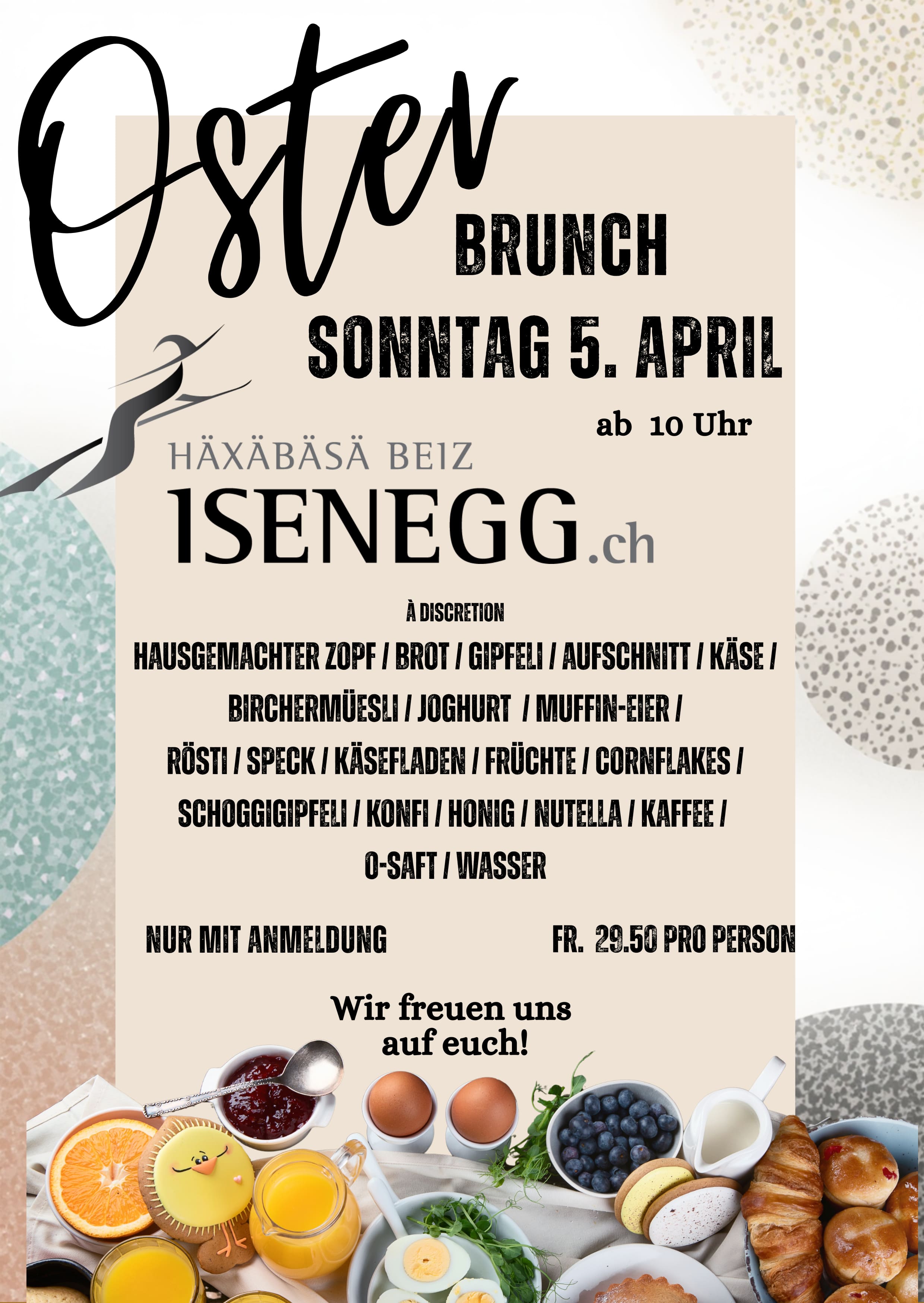 Freut euch auf eine vielfältige Auswahl an frischen, regionalen und hausgemachten Köstlichkeiten – von herzhaften Klassikern bis hin zu süssen Leckereien, begleitet von duftendem Zopf und hoffentlich frühlingshaftem Wetter...